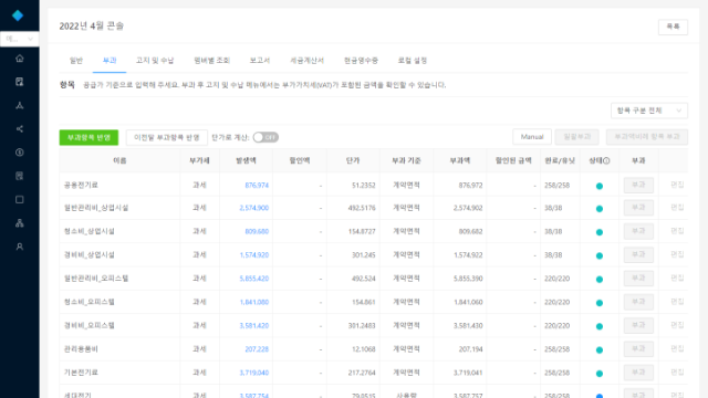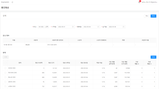 유닛클 ERP 관리비관리복잡하고 어려운 관리비 계산을 자동화로 더 간편하게! 더 정확하게! 유닛클 ERP 플랜 보기 실무자의 업무를 줄여주는 관리비관리 스마트 통합관리 솔루션으로 맞춤 관리하세요! 부과 & 수납면적, 사용량 등 각종 설정에 따른 부과 월할, 일할 연체료 설정 자동이체, 가상계좌 자동수납 조정 & 정산일반관리비, 개별사용료 조정 중간정산, 선수금 정산 각종 할인/할증, 끝자리(절사 등) 옵션 각종연동가상계좌, 자동이체 자동수납 연동 홈택스 연동 세금계산서 발행 입주민별 맞춤 문자/카톡 알림 관리비관리 부과 & 수납 환경에 맞게 설정하여 부과하고 자동으로 연체료 계산까지! 면적, 사용량 등 각종 설정에 따른 부과 월할, 일할 연체료 설정 자동이체, 가상계좌 자동수납 관리비관리 조정 & 정산 관리비 조정이나 할인/할증, 중간정산까지 환경에 맞게! 일반관리비, 개별사용료 조정 중간정산, 선수금 정산 각종 할인/할증, 끝자리(절사 등) 옵션 관리비관리 각종연동 실무자의 업무를 줄여주는다양한 연동과 자동화! 가상계좌, 자동이체 자동수납 연동 홈택스 연동 세금계산서 발행 입주민별 맞춤 문자/카톡 알림 유닛클 ERP에 편리함을 더하다! 건물 관리, 관리비 부과, 세무, 임대 관리, 홈케어 각종 제휴 서비스로 복잡한 업무들을 원스톱 해결 연계 서비스 보기